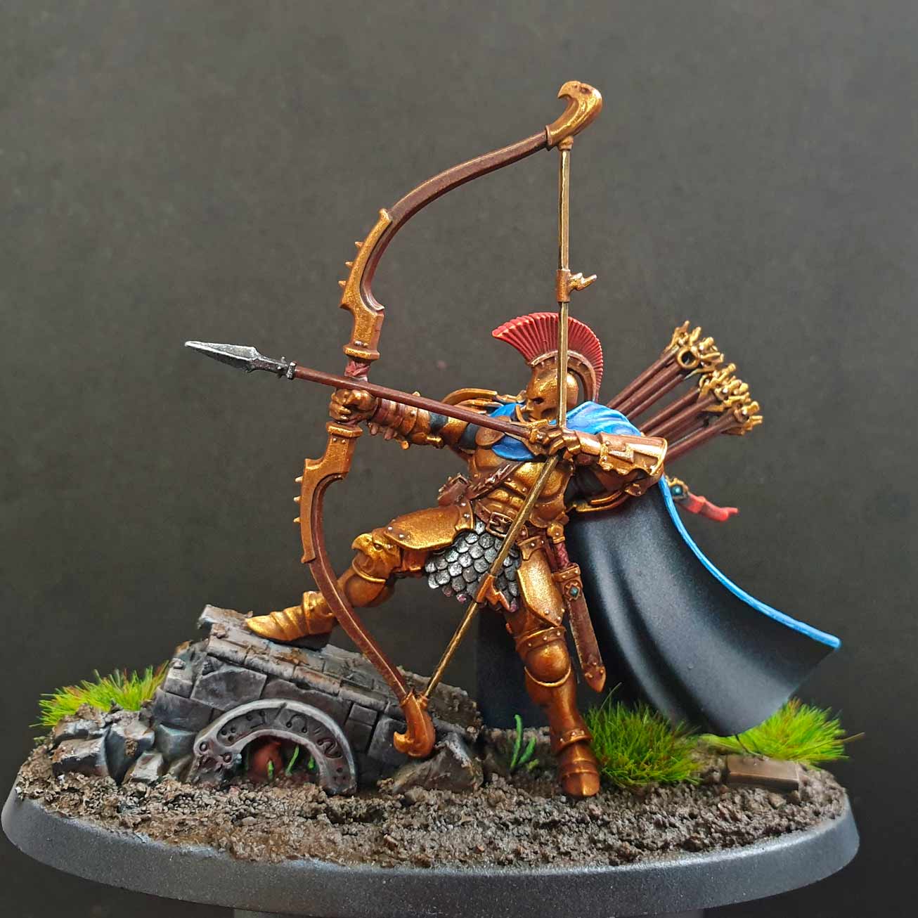 With any painting project, it is important to think ahead and establish what goals we want to aim for. Try to set realistic and ordinary goals for your scale model so it feels good when you achieve them. Here I wanted an effective gold armor that is easy to replicate- either across an army, or by others who want to paint an army of Stormcast! It should also work with other predominantly-gold armies, too, like Custodians.